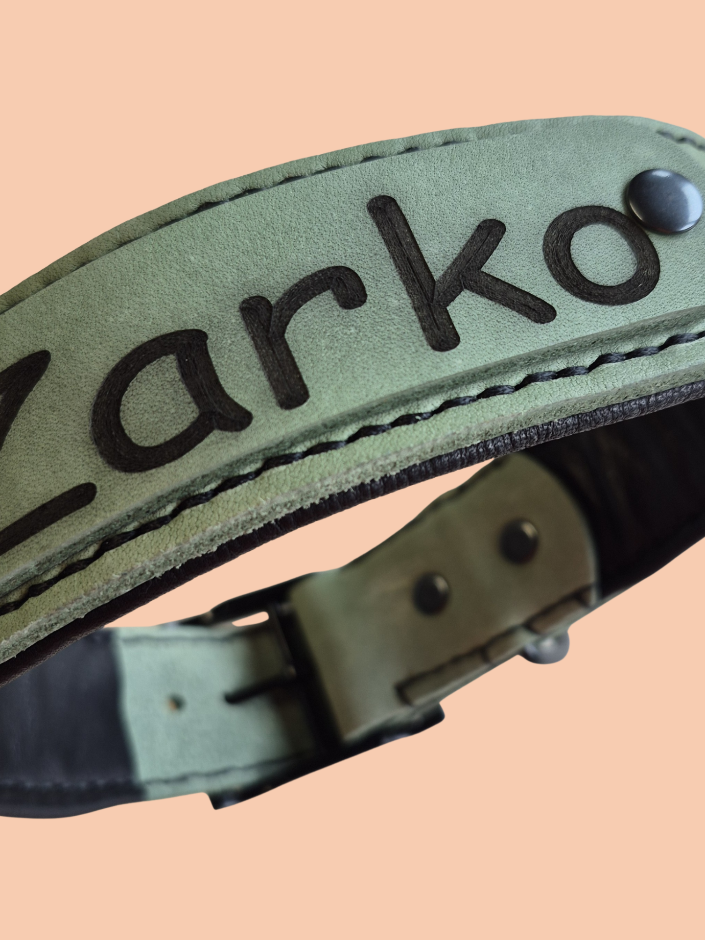 Gi hunden din et unikt halsbånd laget etter mål. Dette håndlagde lærhalsbåndet blir spesiallaget for deg og kan graveres fritt med for eksempel navn, telefonnummer eller en kort tekst.